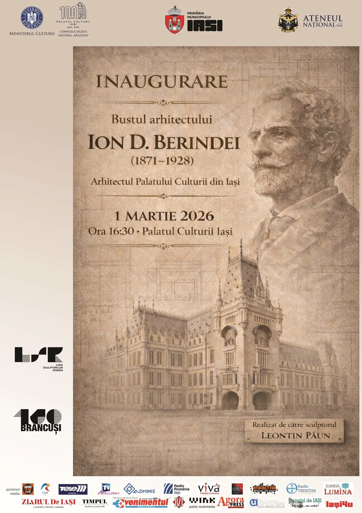 La împlinirea a 155 de ani de la nașterea arhitectului Ion D. Berindei (1871 - 1928), Palatul Culturii din Iași onorează memoria celui care a proiectat și construit acest edificiu simbol al Iașului, prin intermediul unui moment special, în cadrul evenimentului Luna Sculptorilor Români (ediția a VI-a).