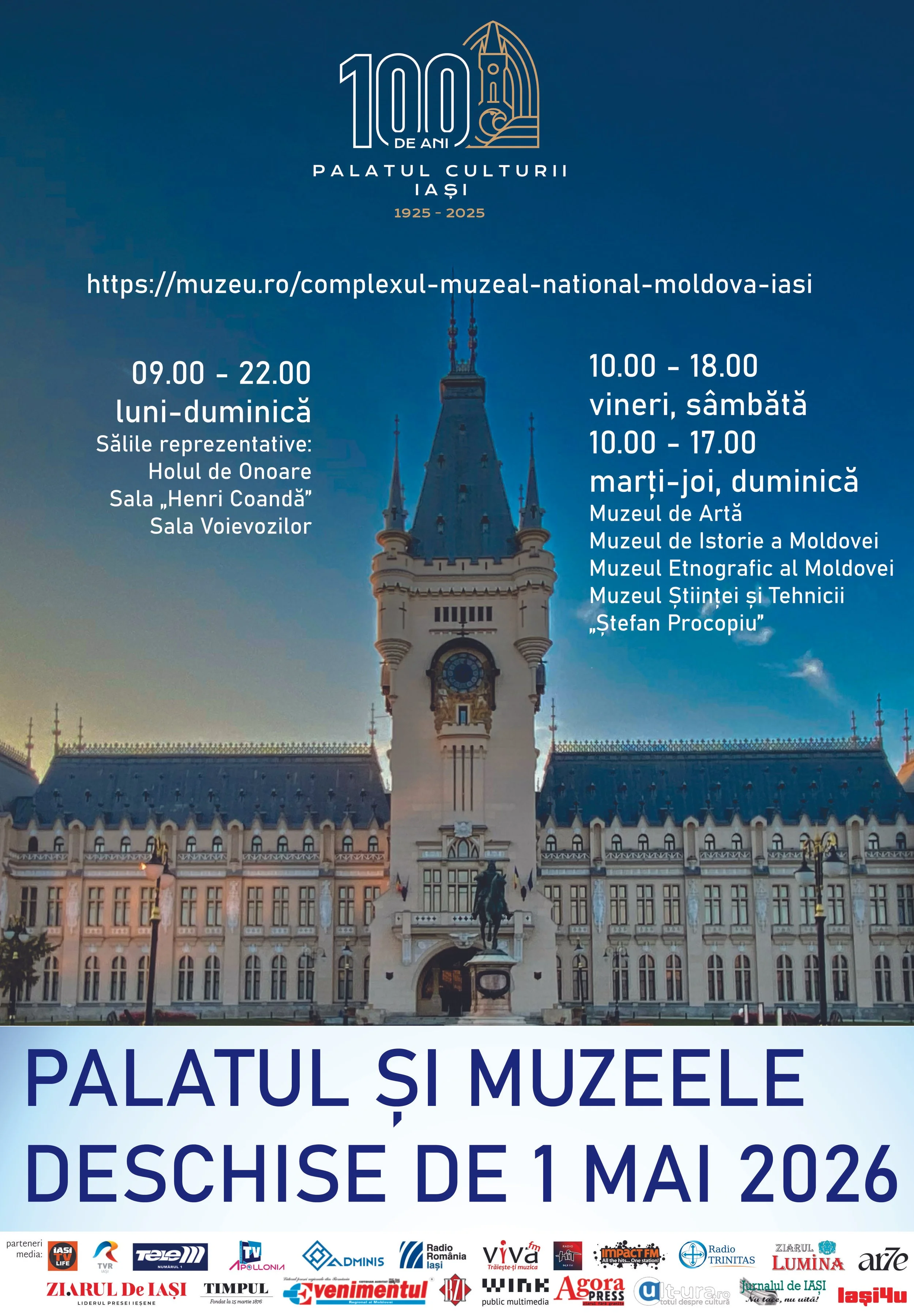 În data de 1 mai 2026, toate muzeele din rețeaua Complexului Muzeal Național „Moldova” Iași vor fi deschise pentru public după un program special de vizitare, din dorința de adaptare a ofertei culturale la cerințele și așteptările publicului larg, propunând expoziții interactive și experiențe muzeale diversificate.