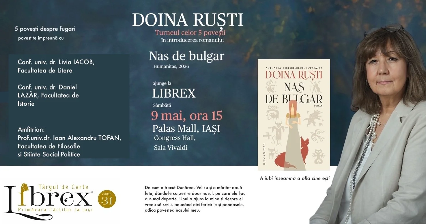 Invitată la Târgul de Carte LIBREX, Iași, Doina Ruști va avea o întâlnire cu publicul ieșean la Palas Mall, în Sala Vivaldi (Congress Hall).