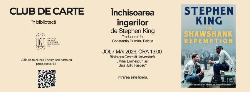 Joi, 7 mai 2026, de la ora 13:00, în Sala „B. P. Hașdeu” a BCU Iași, sunteți așteptați la o nouă ediție a Clubului de carte în bibliotecă.