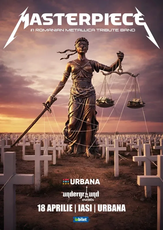 Sâmbătă, 18 aprilie, ora 20:00, acces de la 19:00, căutați-vă tricourile cu Metallica din vremea studenției, cu patina timpului, pentru că Masterpiece, prima formație tribut Metallica din România, vine la Urbana să cânte fix melodiile care v-au făcut rockeri.