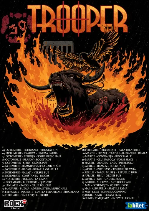 La Underground Pub, vineri, 24 aprilie 2026, de la ora 19:00, puteți asculta live trupa Trooper, aflată în turneu.